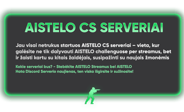 AISTELO Counter-Strike serveriai – gera atmosfera, aktyvi bendruomenė ir smagus žaidimas. Prisijunk, žaisk kartu su AISTELO.